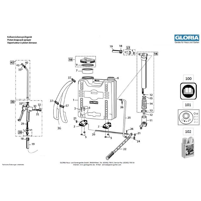 Kolbenrückensprühgerät Gloria 2012 Explosionszeichnung mit Ersatzteilliste (Bild Nr. 22)